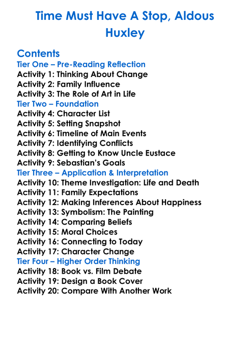 Time Must Have A Stop Aldous Huxley Worksheet Activity Booklet