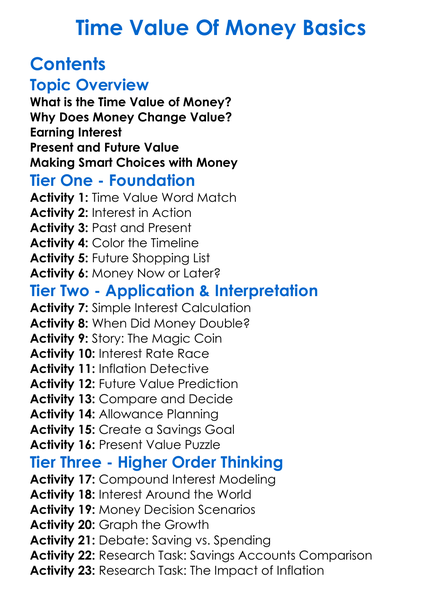 Time Value Of Money Basics Worksheet Activity Booklet