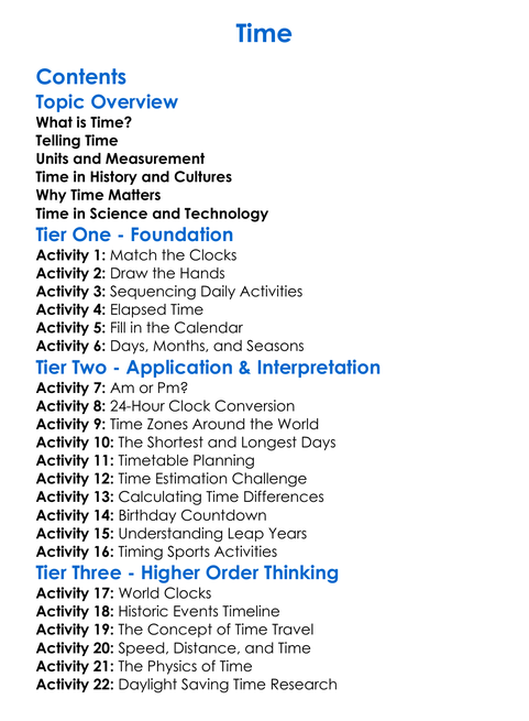 Time Worksheet Activity Booklet