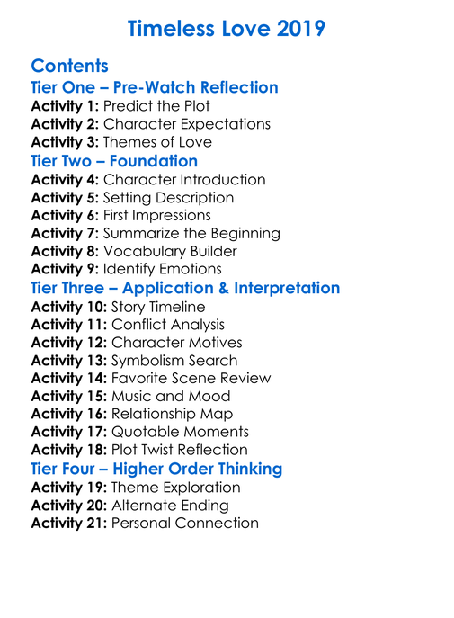 Timeless Love 2019 Worksheet Activity Booklet