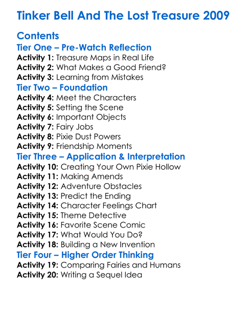 Tinker Bell And The Lost Treasure 2009 Worksheet Activity Booklet