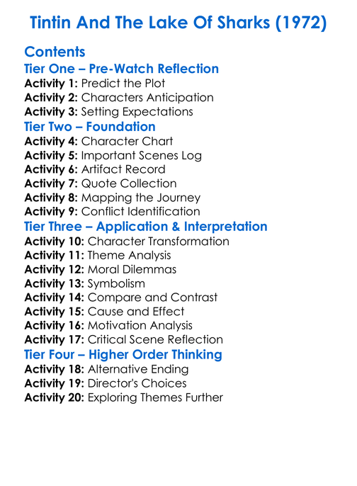 Tintin And The Lake Of Sharks 1972 Worksheet Activity Booklet