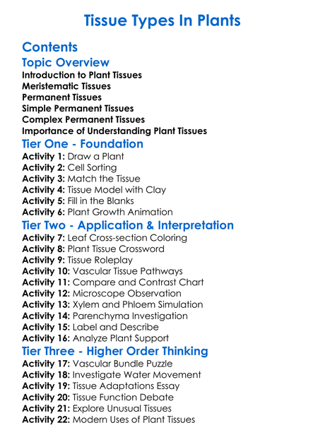 Tissue Types In Plants Worksheet Activity Booklet