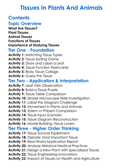 Tissues In Plants And Animals Worksheet Activity Booklet