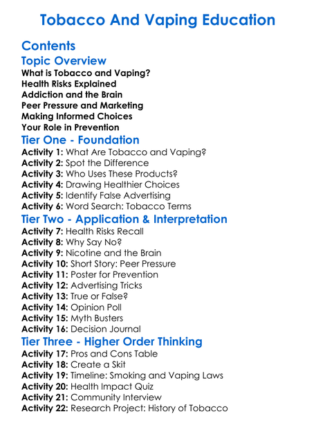 Tobacco And Vaping Education Worksheet Activity Booklet