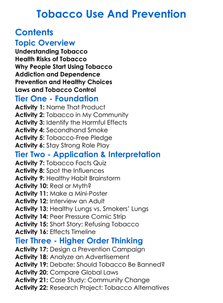 Tobacco Use And Prevention Worksheet Activity Booklet