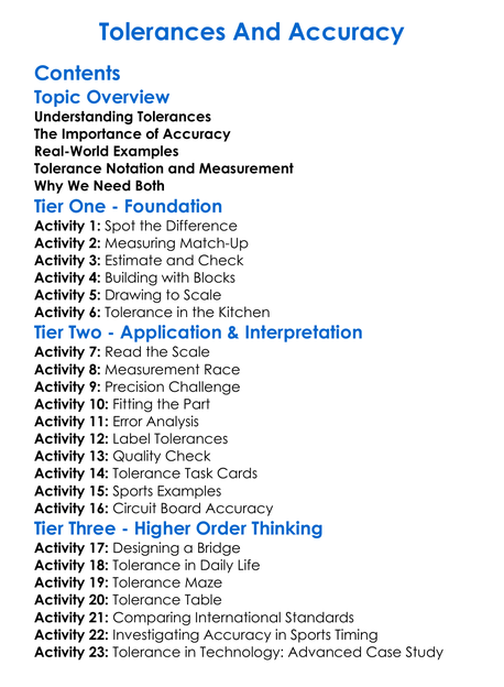 Tolerances And Accuracy Worksheet Activity Booklet