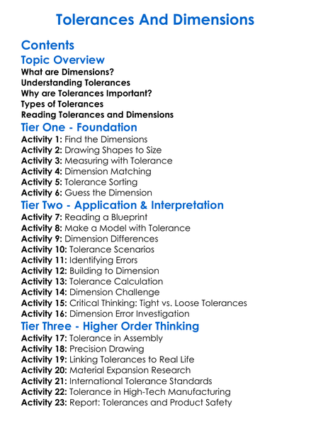 Tolerances And Dimensions Worksheet Activity Booklet