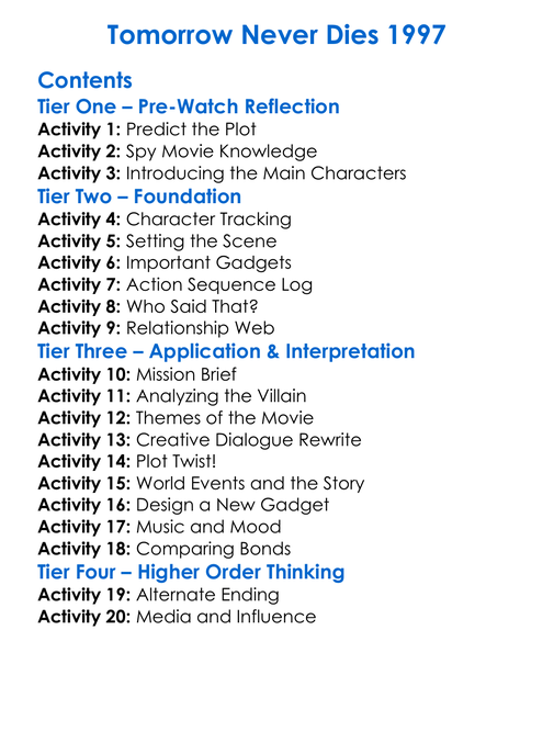 Tomorrow Never Dies 1997 Worksheet Activity Booklet