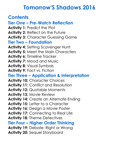 Tomorrows Shadows 2016 Worksheet Activity Booklet