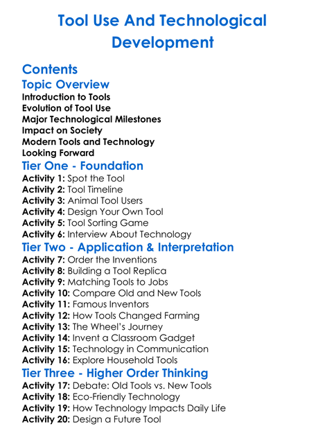 Tool Use And Technological Development Worksheet Activity Booklet