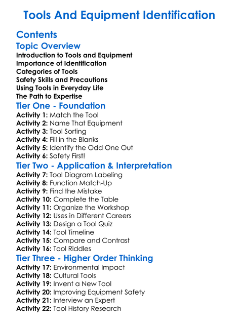 Tools And Equipment Identification Worksheet Activity Booklet