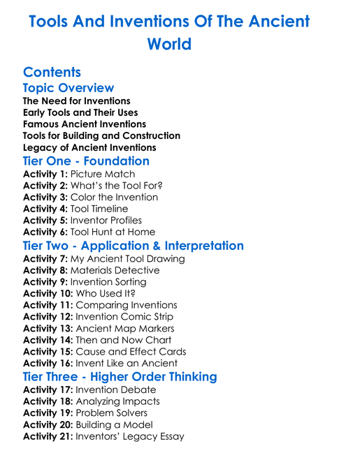 Tools And Inventions Of The Ancient World Worksheet Activity Booklet