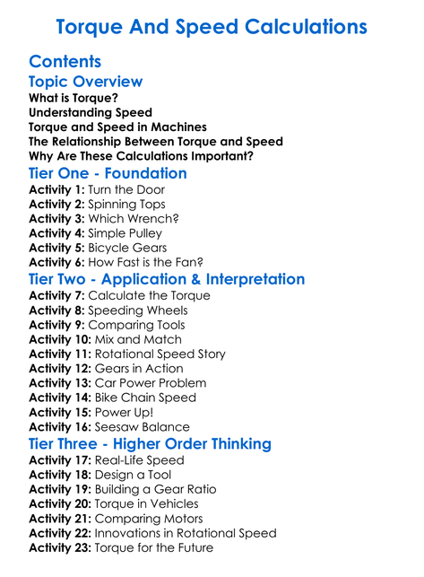 Torque And Speed Calculations Worksheet Activity Booklet