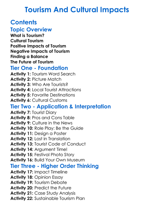 Tourism And Cultural Impacts Worksheet Activity Booklet
