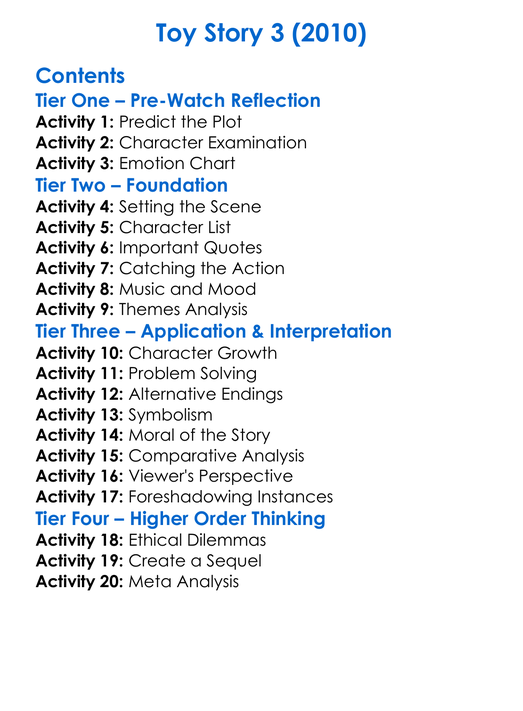 Toy Story 3 2010 Worksheet Activity Booklet