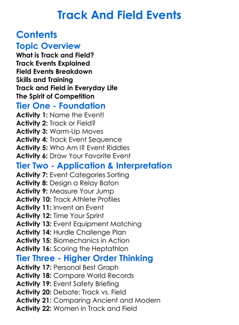 Track And Field Events Worksheet Activity Booklet