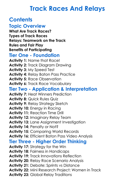 Track Races And Relays Worksheet Activity Booklet