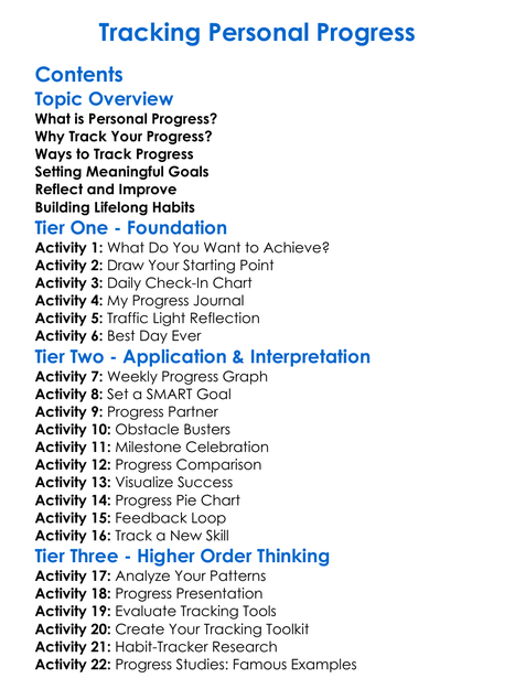 Tracking Personal Progress Worksheet Activity Booklet
