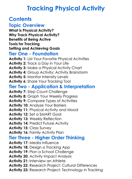 Tracking Physical Activity Worksheet Activity Booklet