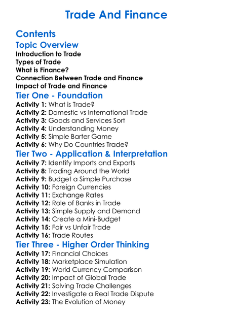 Trade And Finance Worksheet Activity Booklet