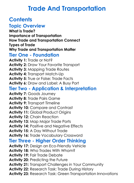 Trade And Transportation Worksheet Activity Booklet