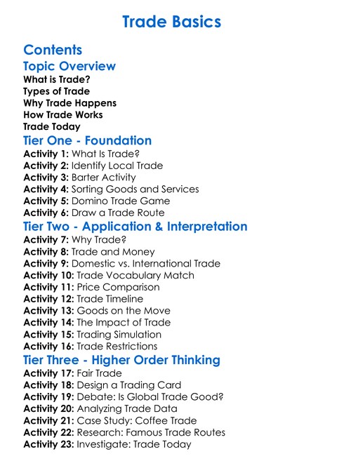 Trade Basics Worksheet Activity Booklet