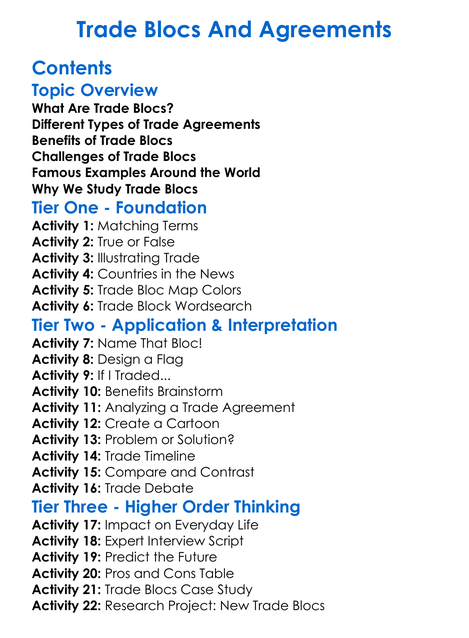 Trade Blocs And Agreements Worksheet Activity Booklet