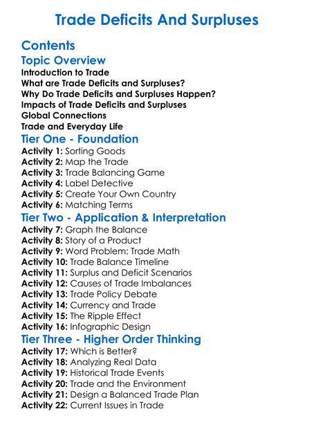 Trade Deficits And Surpluses Worksheet Activity Booklet