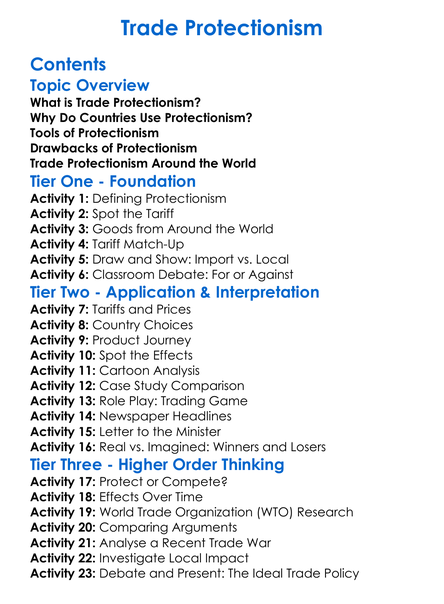 Trade Protectionism Worksheet Activity Booklet