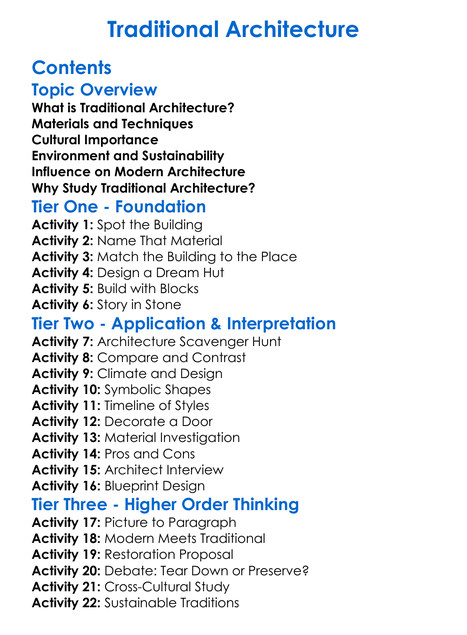 Traditional Architecture Worksheet Activity Booklet