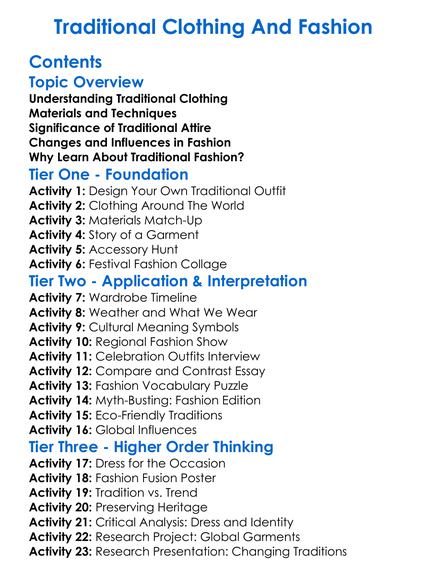 Traditional Clothing And Fashion Worksheet Activity Booklet