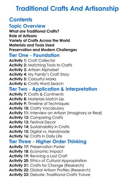 Traditional Crafts And Artisanship Worksheet Activity Booklet