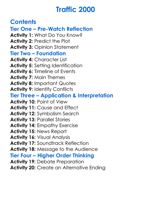 Traffic 2000 Worksheet Activity Booklet