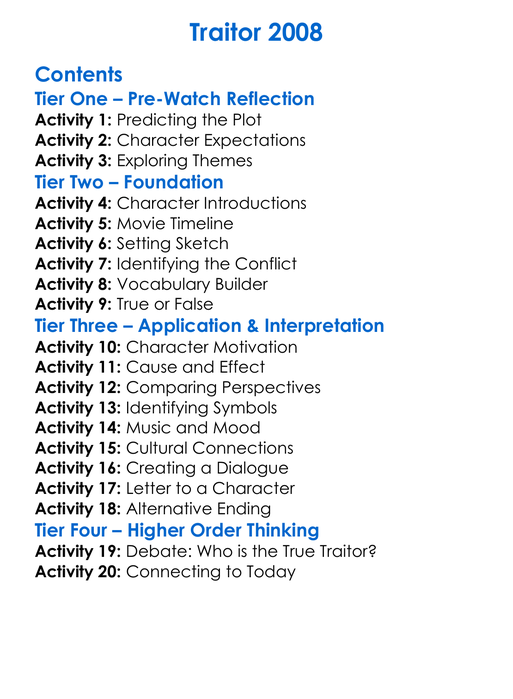 Traitor 2008 Worksheet Activity Booklet