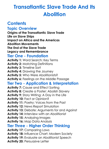 Transatlantic Slave Trade And Its Abolition Worksheet Activity Booklet