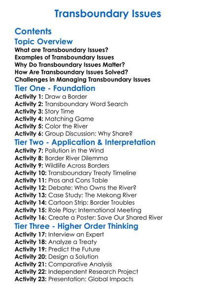 Transboundary Issues Worksheet Activity Booklet
