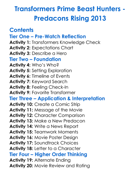 Transformers Prime Beast Hunters Worksheet Activity Booklet