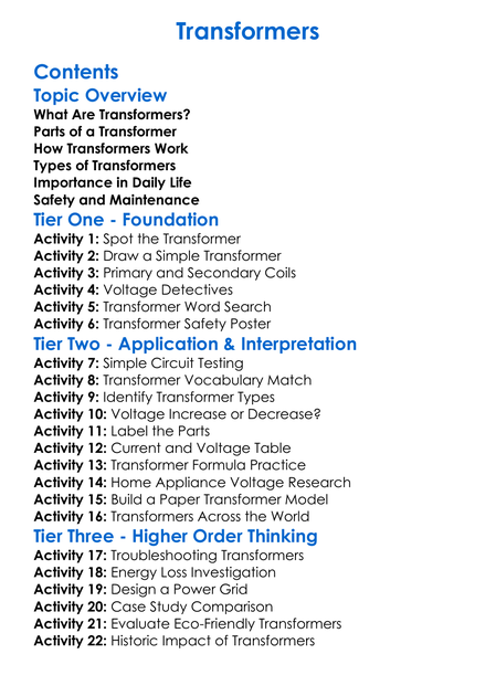 Transformers Worksheet Activity Booklet