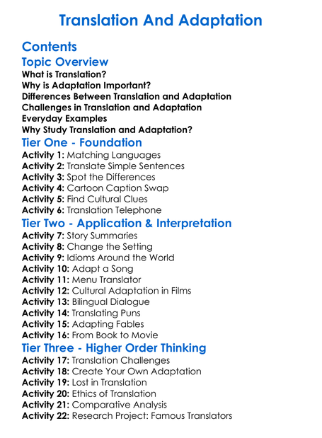 Translation And Adaptation Worksheet Activity Booklet