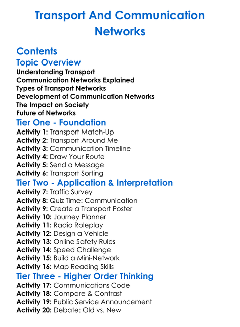 Transport And Communication Networks Worksheet Activity Booklet