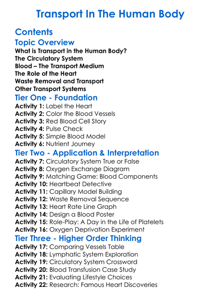 Transport In The Human Body Worksheet Activity Booklet