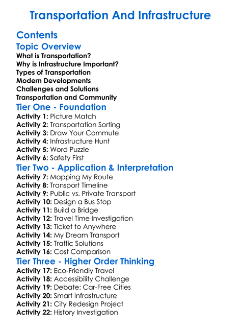Transportation And Infrastructure Worksheet Activity Booklet