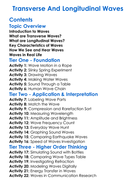 Transverse And Longitudinal Waves Worksheet Activity Booklet