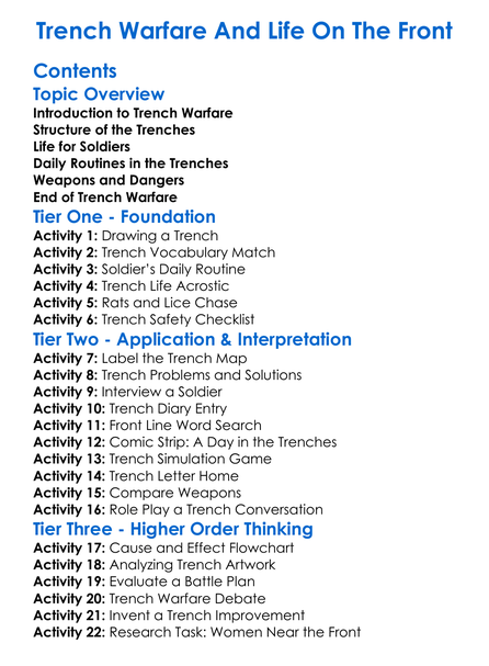 Trench Warfare And Life On The Front Worksheet Activity Booklet