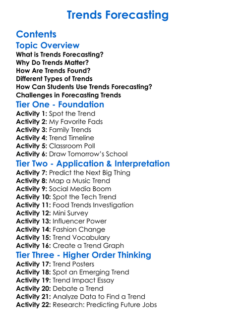 Trends Forecasting Worksheet Activity Booklet