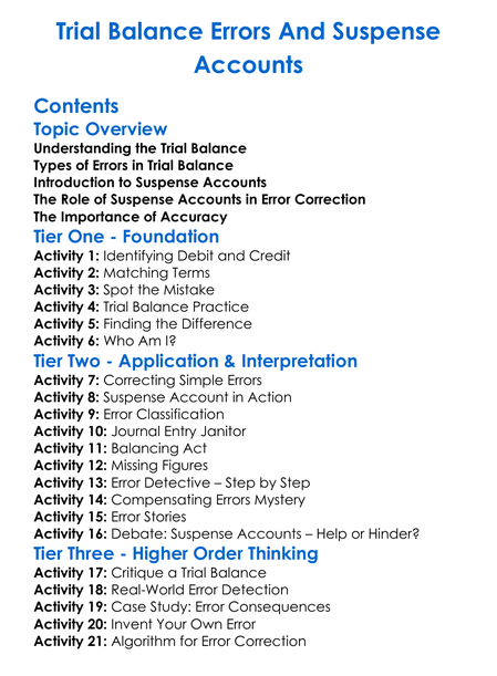 Trial Balance Errors And Suspense Accounts Worksheet Activity Booklet