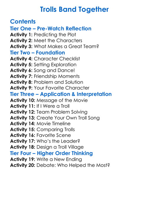 Trolls Band Together Worksheet Activity Booklet