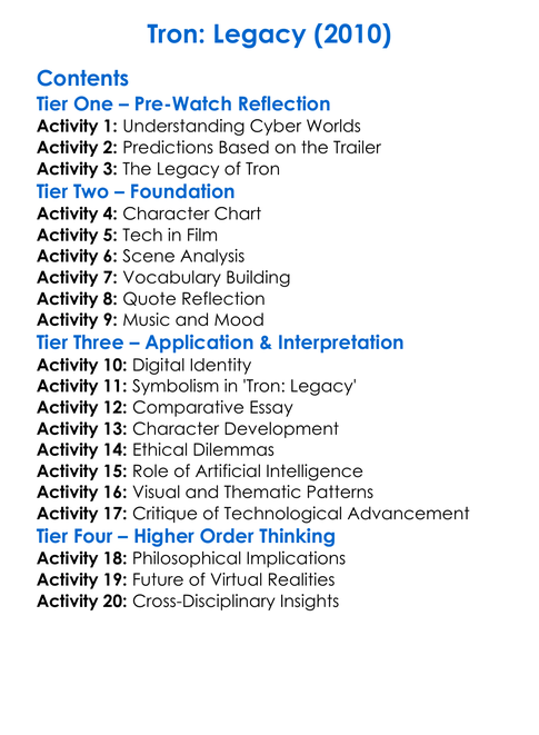 Tron Legacy 2010 Worksheet Activity Booklet