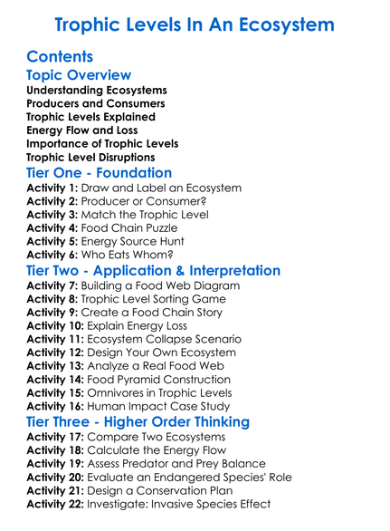Trophic Levels In An Ecosystem Worksheet Activity Booklet